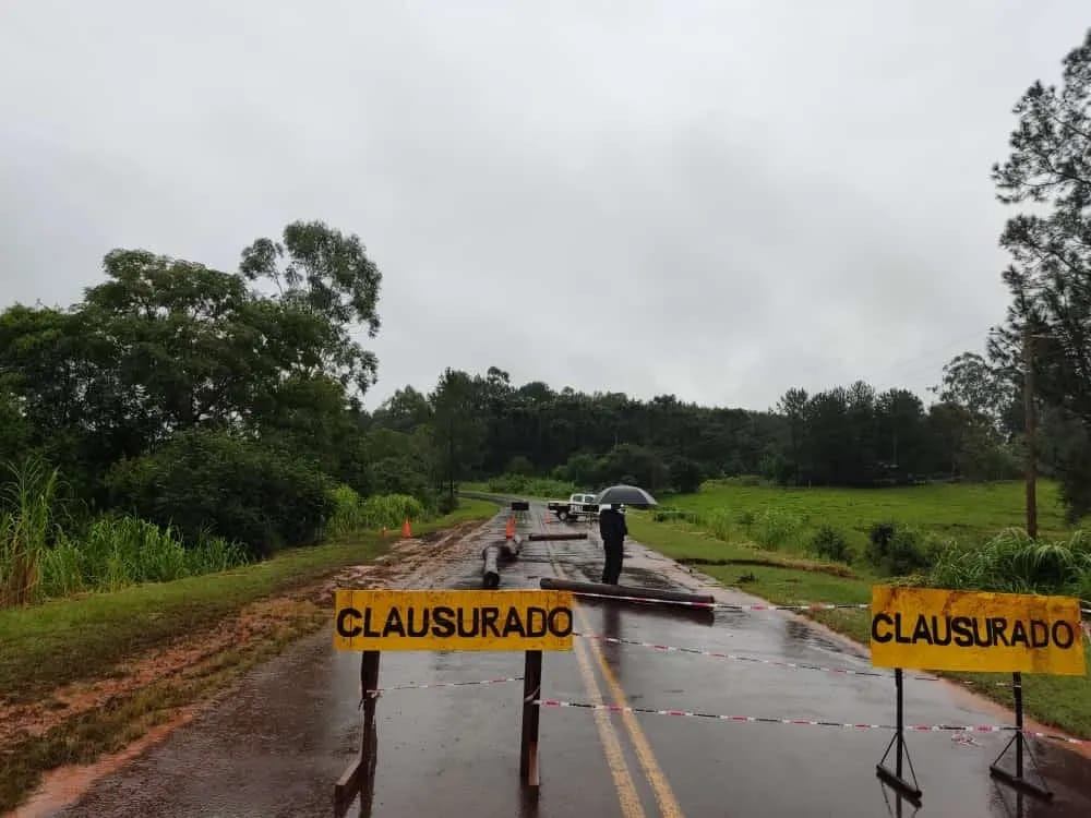 En San Pedro, se produjo el desborde del arroyo en la zona de la colectora ruta Nacional 14 km 1048 del barrio Santa Rosa, y como consecuencia causó el deslizamiento de tierra al costado de la calzada.