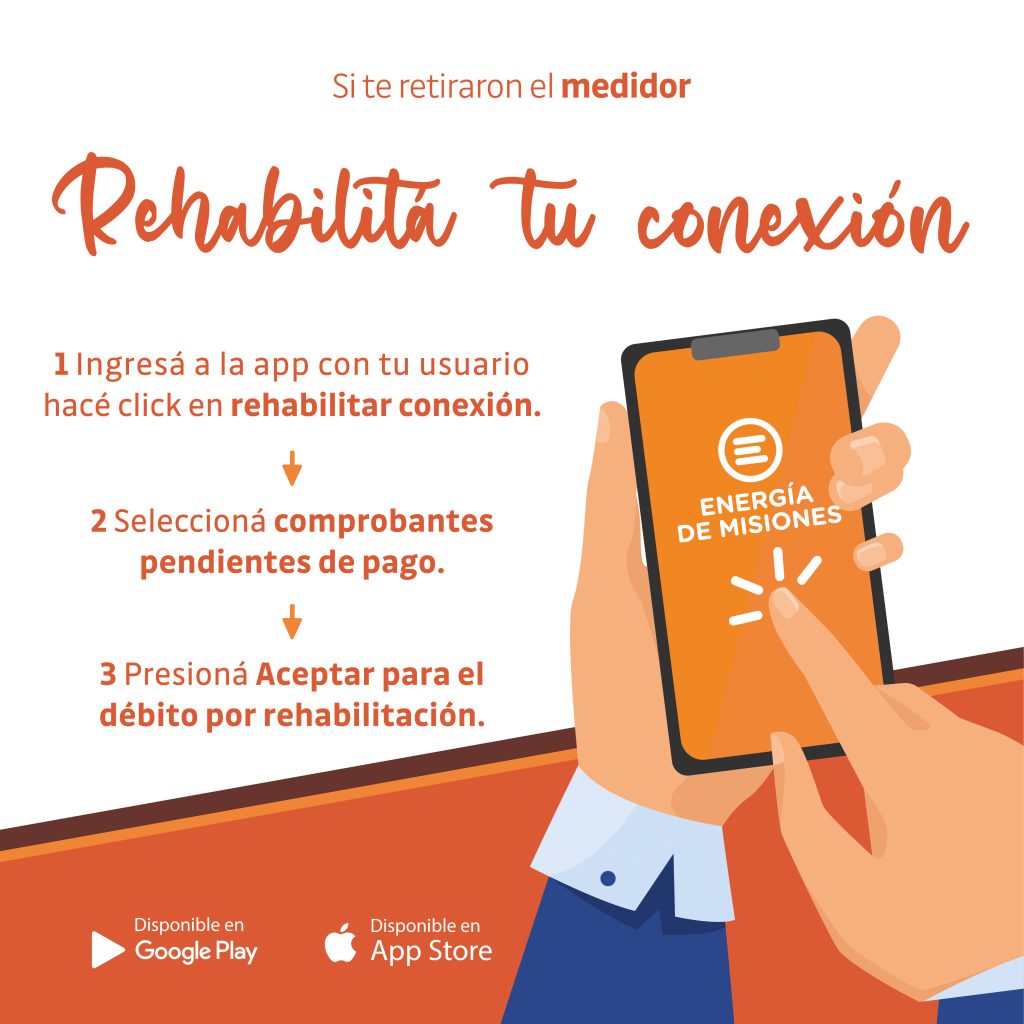 Con el objetivo de brindar a los usuarios facilidades a la hora de realizar sus trámites, desde Energía de Misiones recuerdan a la comunidad que en caso de que su conexión haya sido interrumpida por falta de pago, luego de cancelar la deuda pueden realizar el trámite de rehabilitación del servicio de manera online.