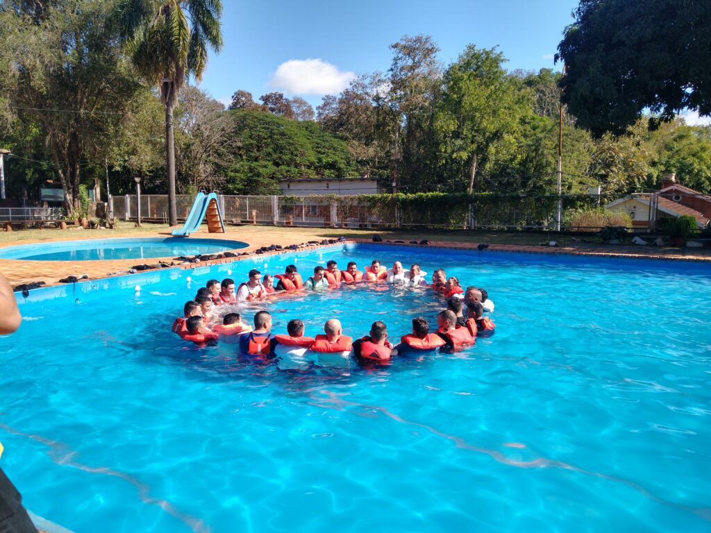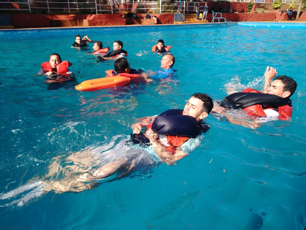 “el modulo es supervivencia, no es un clase de natación o pileta, sino que los cursantes obtienen las herramientas necesarias para poder resolver distintos tipos de situaciones, en un contexto  crítico, como el naufragio de una embarcación o el acuatizaje de una aeronave. Se trabajan técnicas de rescate, como ser over, columna, y circulo dela vida. Este tipo de técnicas de supervivencia permiten que una persona que no sepa nadar sobreviva ante un evento crítico” recalcó Senicen
