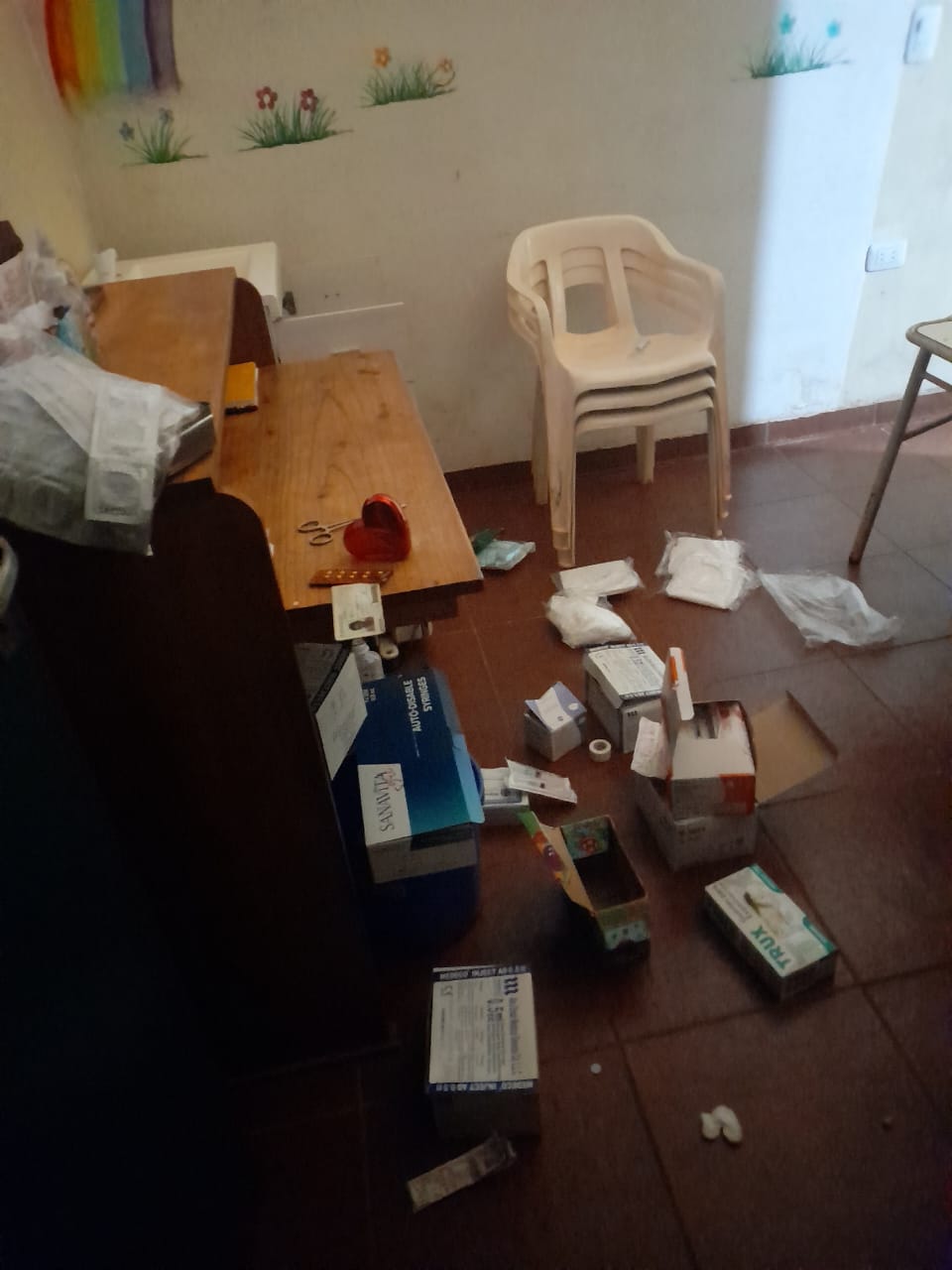 Un relevamiento rápido indica que se llevaron una jarra eléctrica, dos termos un mate, todas las lámparas de la sala, el tensiómetro, medicamentos varios y una estufa de 3 velas. Cabe destacar que se hará un relevamiento exhaustivo donde no se descarta que detecten otros faltantes.