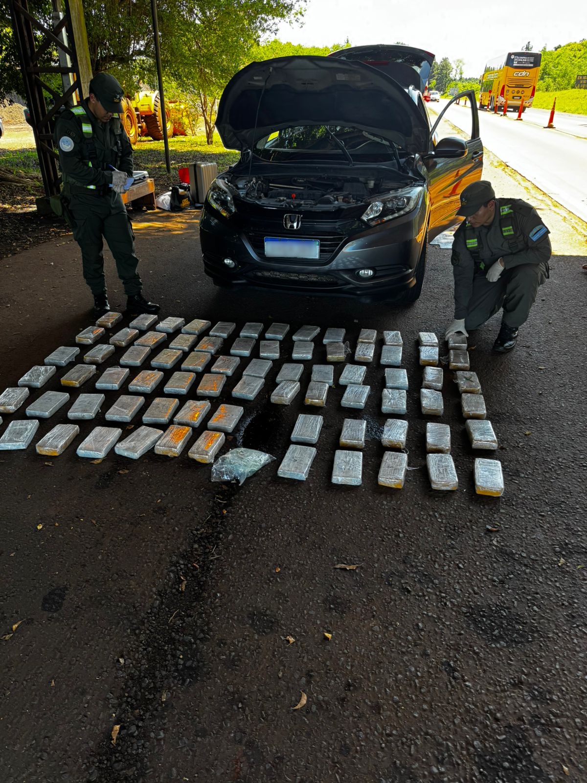 Las Tareas Investigativas, intercambio de información y trabajo coordinado entre Unidades de Inteligencia de la triple frontera y el Escuadrón 13 “Iguazú” permitieron centrar esfuerzos sobre el trazado de la Ruta Nacional Nº 12, arteria donde se establecieron dispositivos de control con el fin de interceptar a un vehículo que se utilizaría para el transporte de estupefacientes. Los paquetes, acondicionados utilizando la modalidad de “envainado”, se hicieron evidentes luego de someter el rodado a equipos de rayos X.