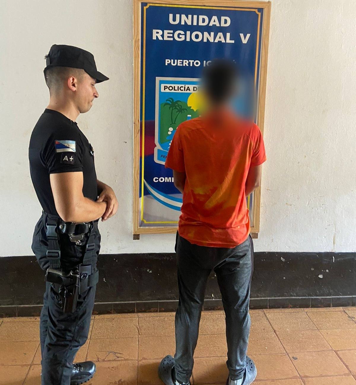Un hombre de 28 años, fue aprehendido en la mañana de hoy luego de que haya sido detectado a través la viralizacion de un vídeo agrediendo físicamente a un árbitro en un partido que se disputaba en una Cancha de Fútbol 5 situada sobre la Calle Santa María del Iguazú de esta ciudad.